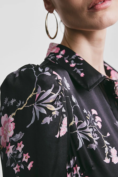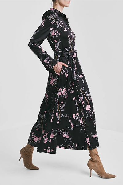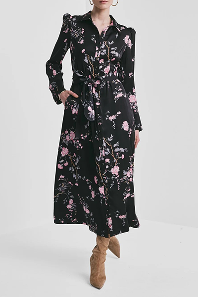 Detaljer: Kjolen har klassisk skjortekrage, knappestolpe i front, knytebelte i livet og lengde til under kne. Kjolen har en avslappet fasong og er normal i størrelsen.