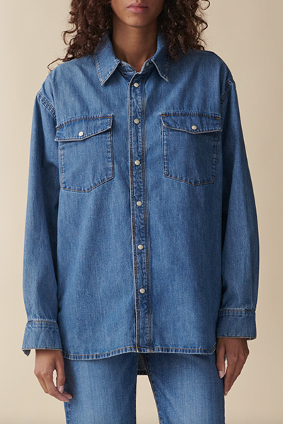 Detaljer: Skjorten har klassisk krage, en løs fasong, patchlommer på brystet og kontrastknapper. Skjortene er normal i størrelsen.