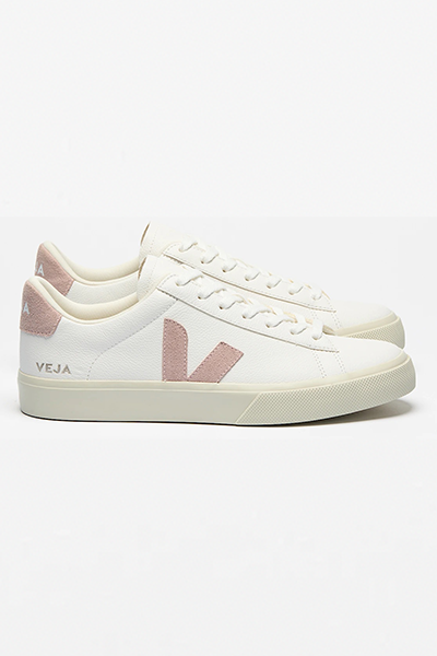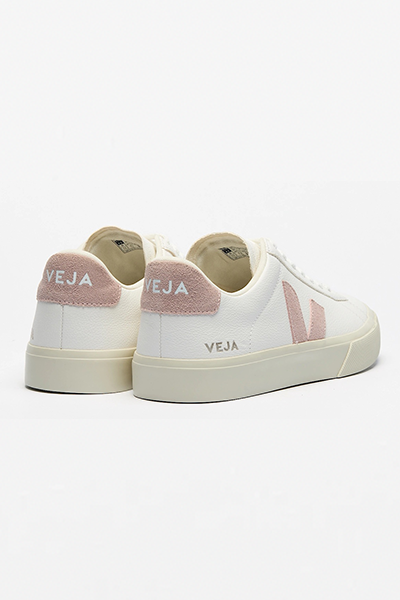 Detaljer: Campo sneaker fra Veja med beige detaljer og veja logo i sølv på høyre side av helen. Skoen er normal i størrelsen.