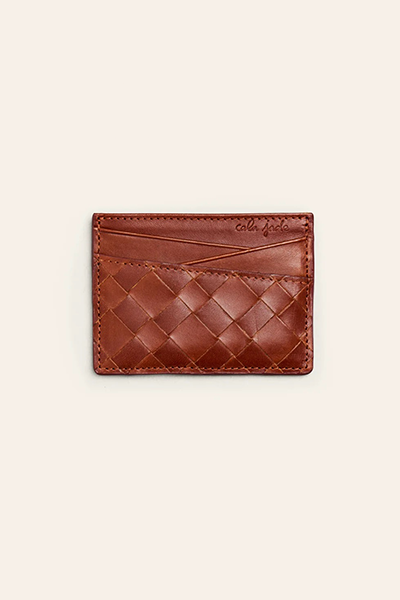 Detaljer: Kortholder har plass til 6 kort, er i en kraftig skinnkvalitet og i Cala jade sitt klassiske vevde mønster.