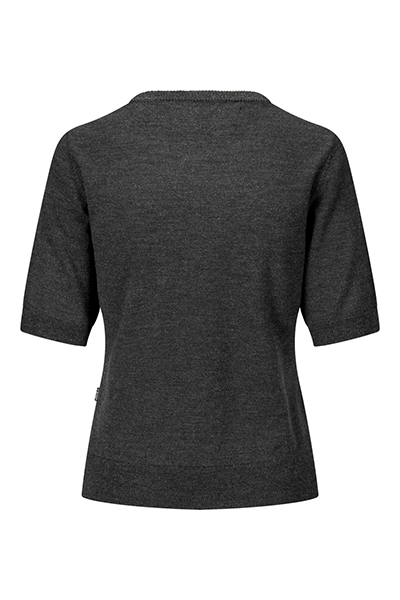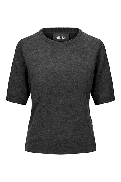Produktbeskrivelse: Modell: Emmy merino top fra Ella & il.  Kvalitet: 100% merinoull.  Farge: Grå melange.  Detaljer: Toppen har korte armer, rund hals, en avslappet fasong og er normal i størrelsen.