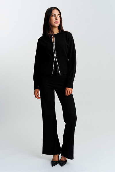 Detaljer: Cardiganen har rund hals, en avslappet fasong, lukkes med skjulte spenner og brodert perlekant. Cardiganen er normal i størrelsen.