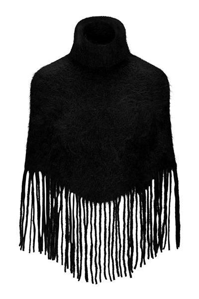 Detaljer: Ponchoen har høy hals, en avslappet fasong og rysjekant. Ponchoen går på dobble størrelser og er normal i størrelsen.