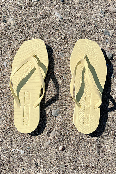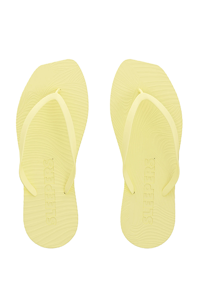 Produktbeskrivelse: Modell: Tapered flip flop fra Sleepers. Kvalitet: FSC sertifisert naturgummi. Farge: Mellow yellow. Detaljer: Tapered er Sleepers signaturdesign med den karakteristiske firkantede formen. Tapered har en lett konstruert såle i naturgummi som følger fotens naturlige kurve og tilpasser seg fotens unike form. Skoen har...